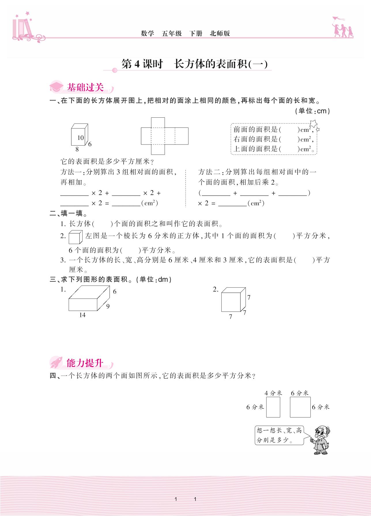 2021下册五年级数学北师版 二 长方体(一)——第4课时 长方体的表面积(一)