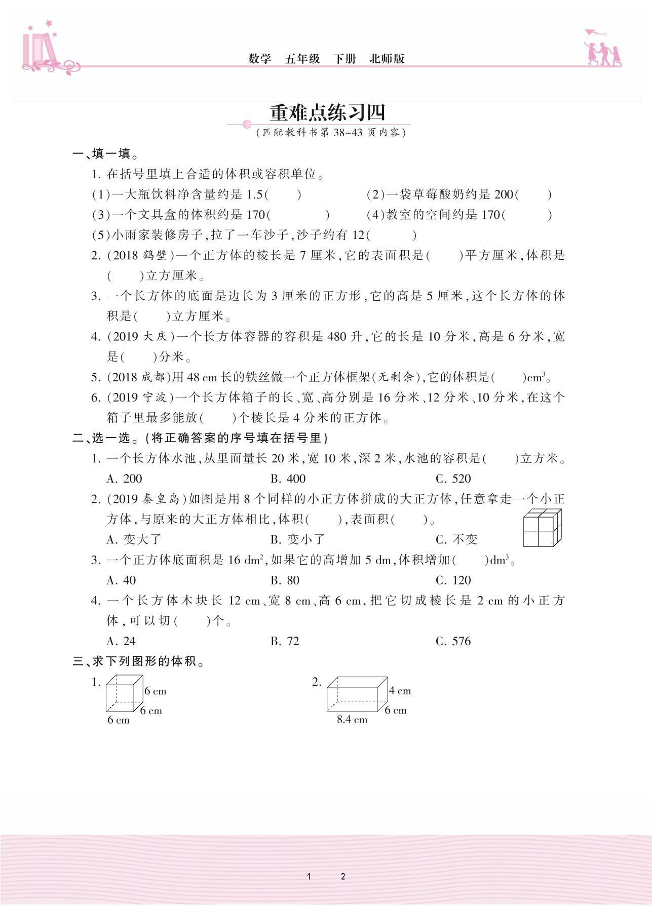 2021下册五年级数学北师版 四 长方体(二)——重难点练习四
