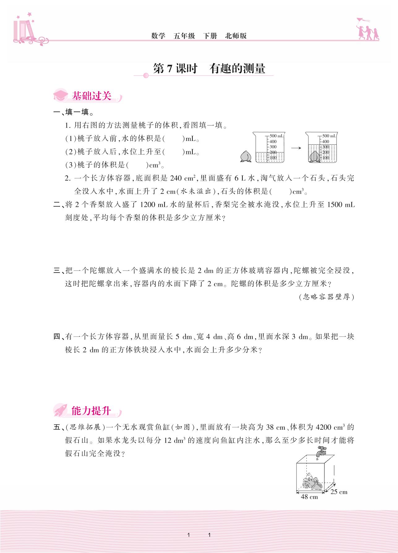 2021下册五年级数学北师版 四 长方体(二)——第7课时 有趣的测量