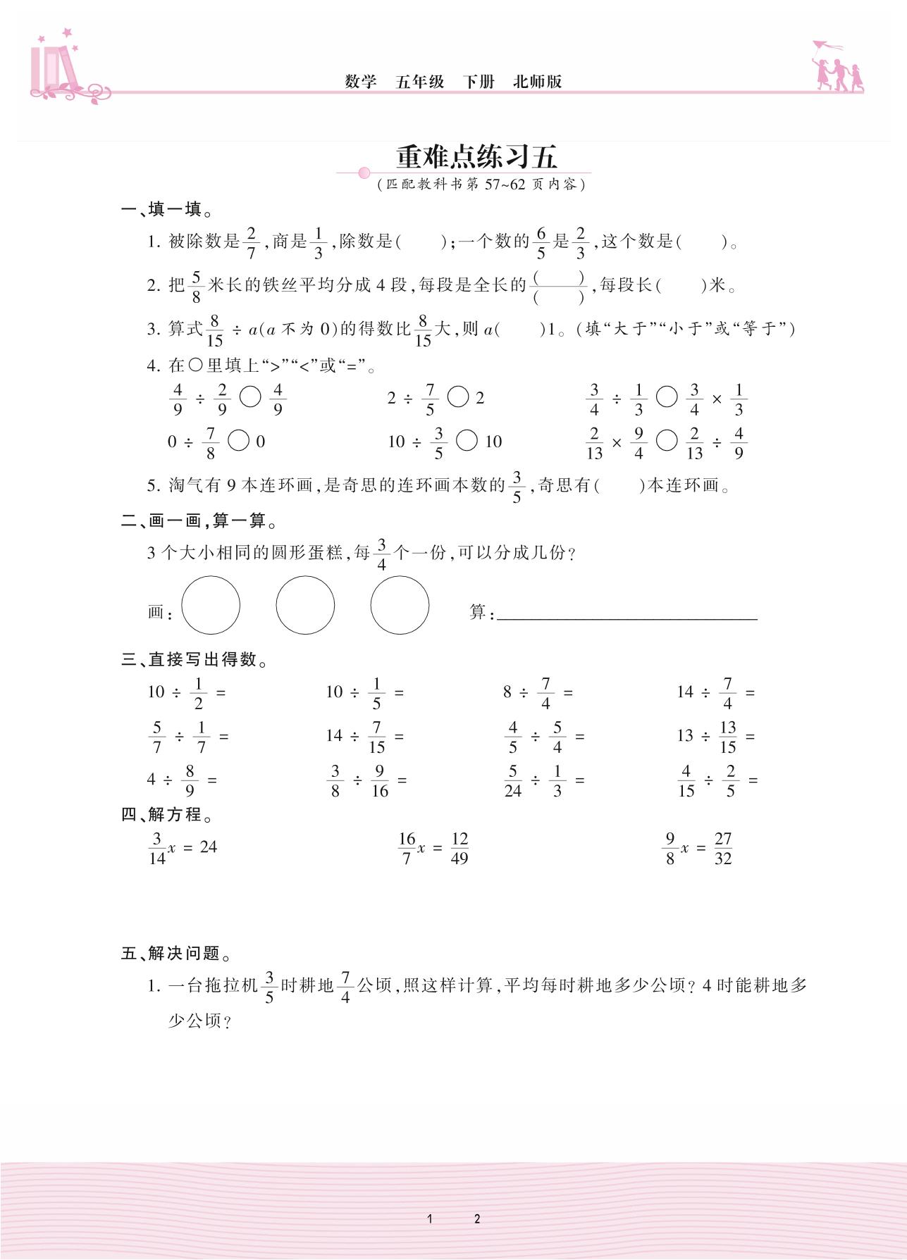 2021下册五年级数学北师版 五 分数除法——重难点练习五