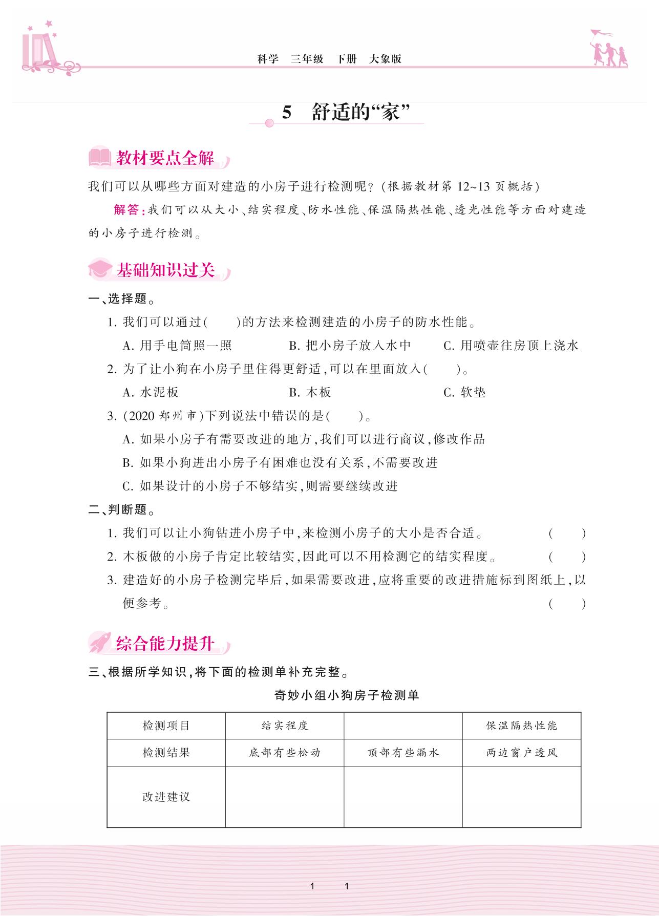 2021下册三年级科学大象版 第一单元 小小建筑师——5 舒适的“家”