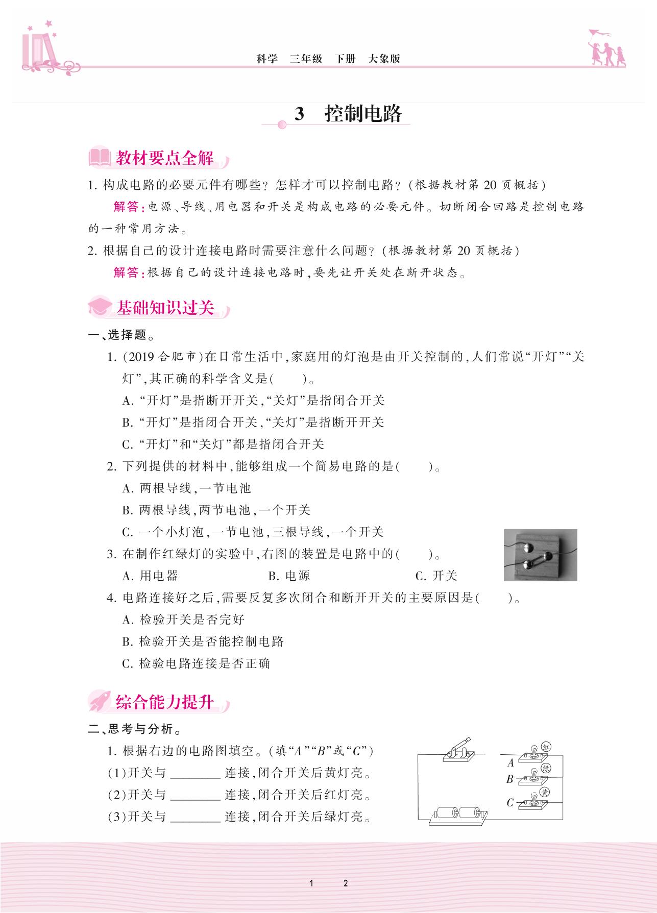 2021下册三年级科学大象版 第二单元 电与我们的生活——3 控制电路