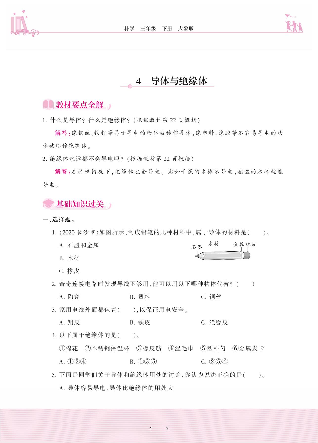 2021下册三年级科学大象版 第二单元 电与我们的生活——4 导体与绝缘体