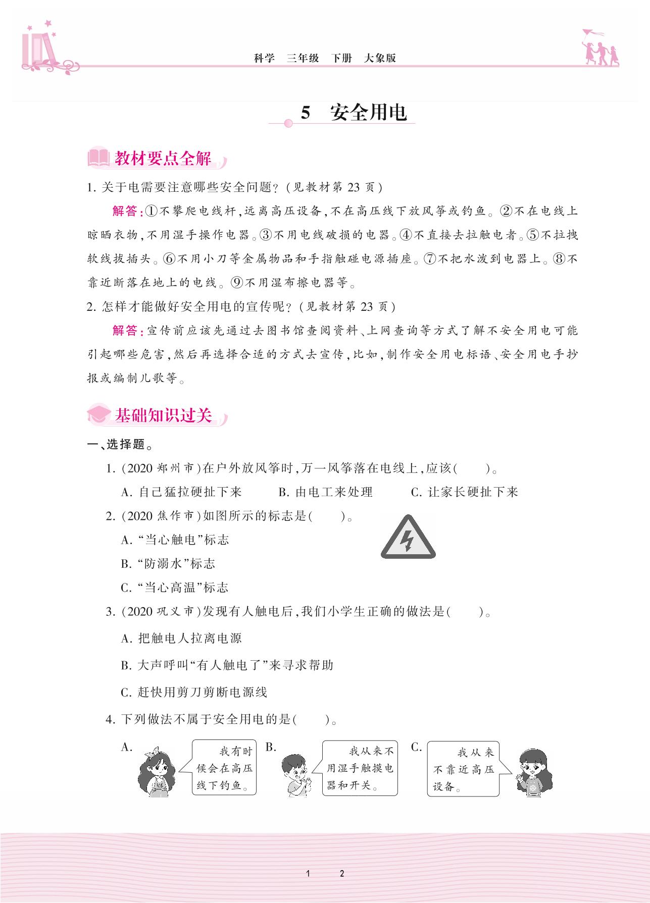 2021下册三年级科学大象版 第二单元 电与我们的生活——5 安全用电