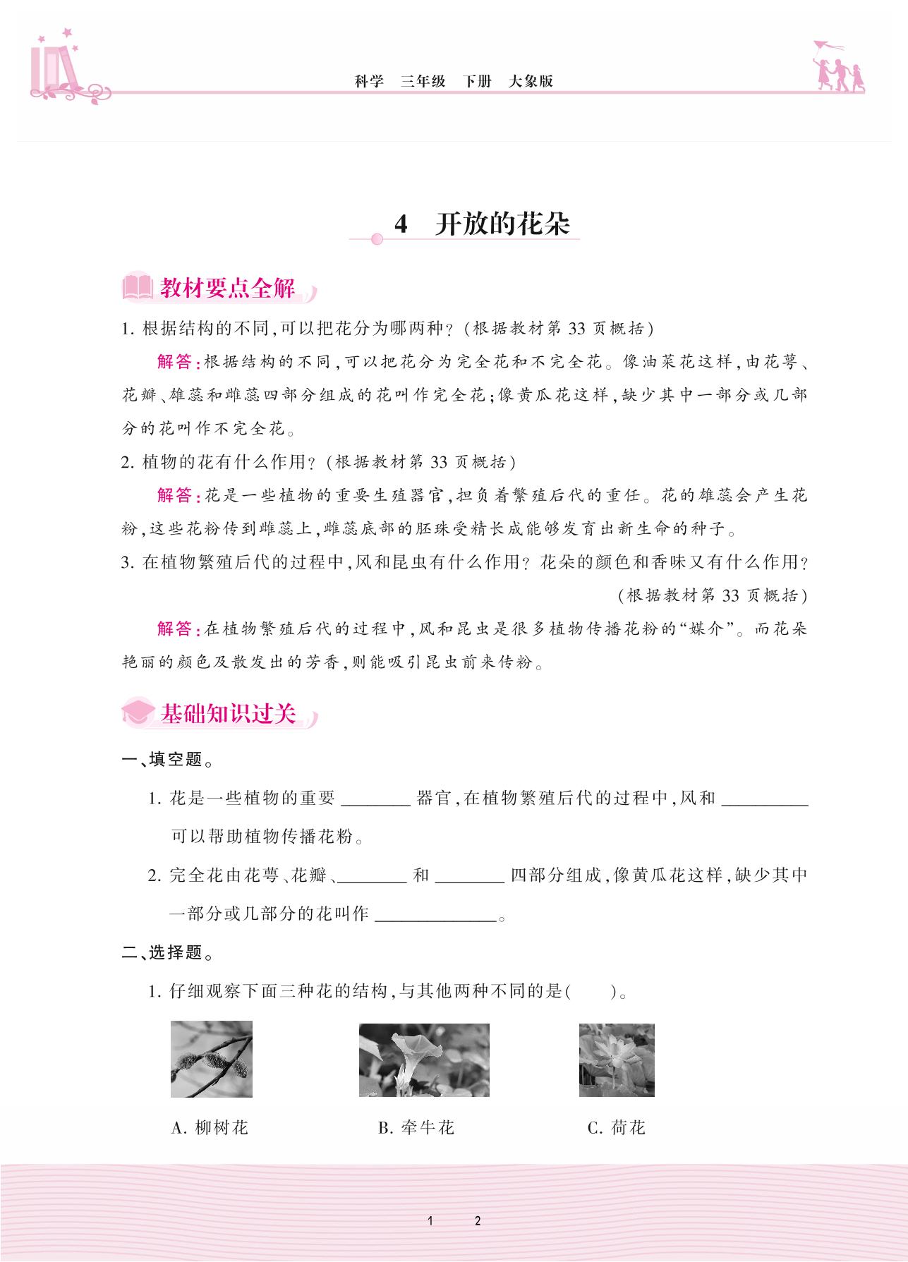 2021下册三年级科学大象版 第三单元 植物的一生——4 开放的花朵