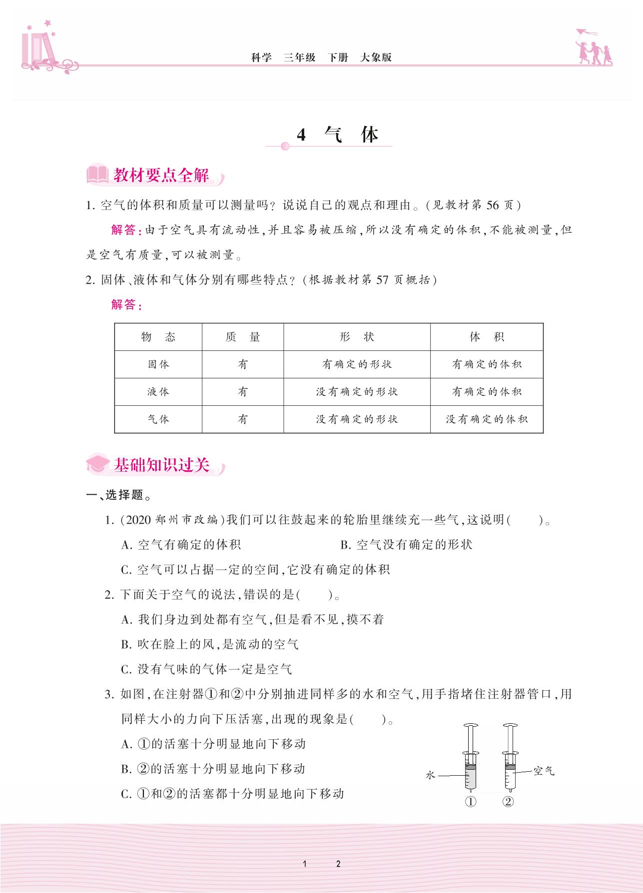 2021下册三年级科学大象版 第五单元 不一样的物体——4 气体