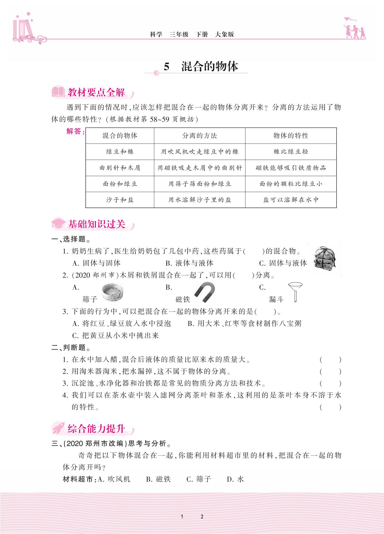 2021下册三年级科学大象版 第五单元 不一样的物体——5 混合的物体