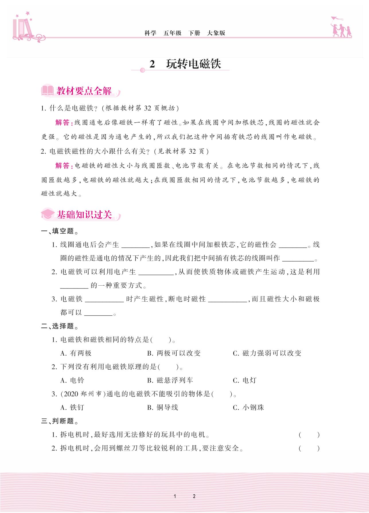 2021下册五年级科学大象版 第三单元 玩具总动员——2 玩转电磁铁
