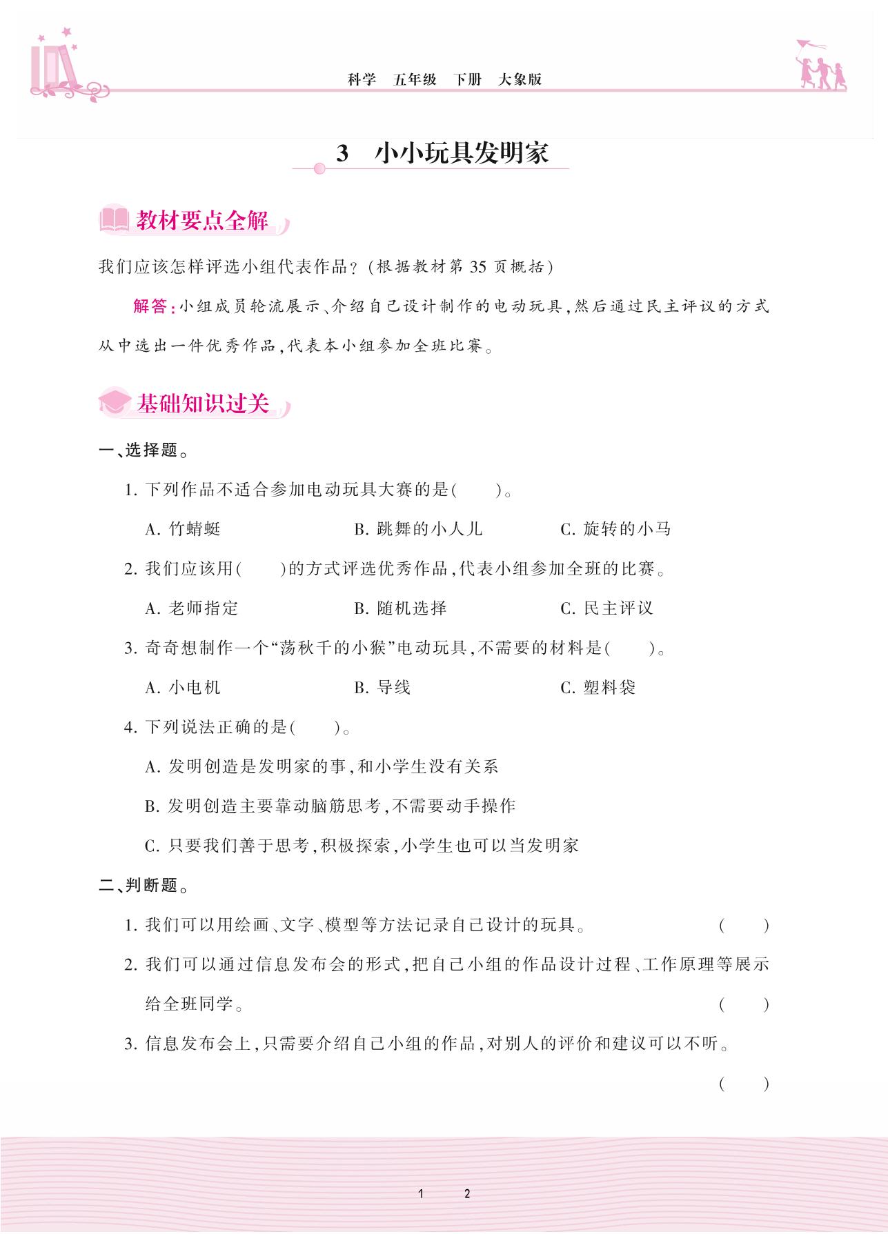 2021下册五年级科学大象版 第三单元 玩具总动员——3 小小玩具发明家