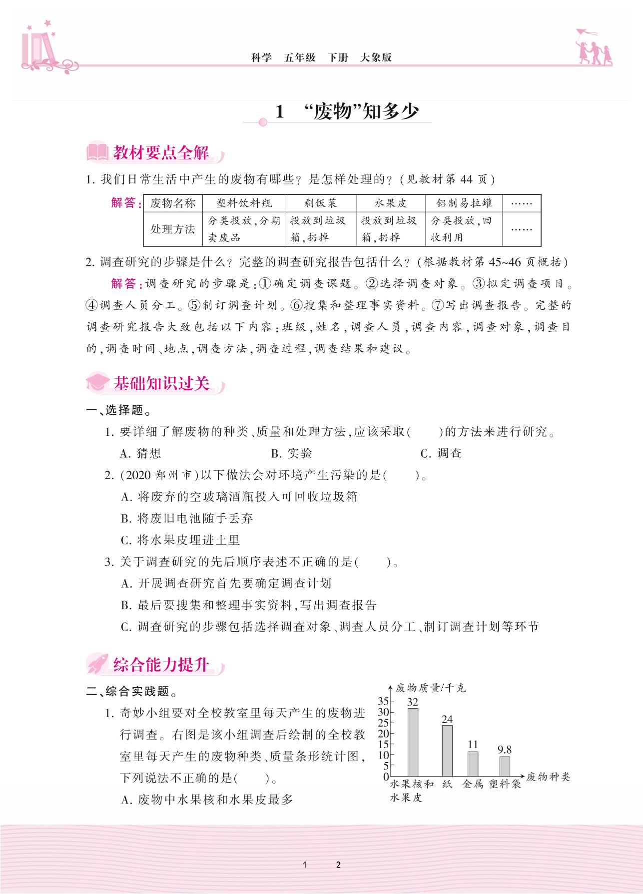 2021下册五年级科学大象版 第四单元 变废为宝——1 “废物”知多少