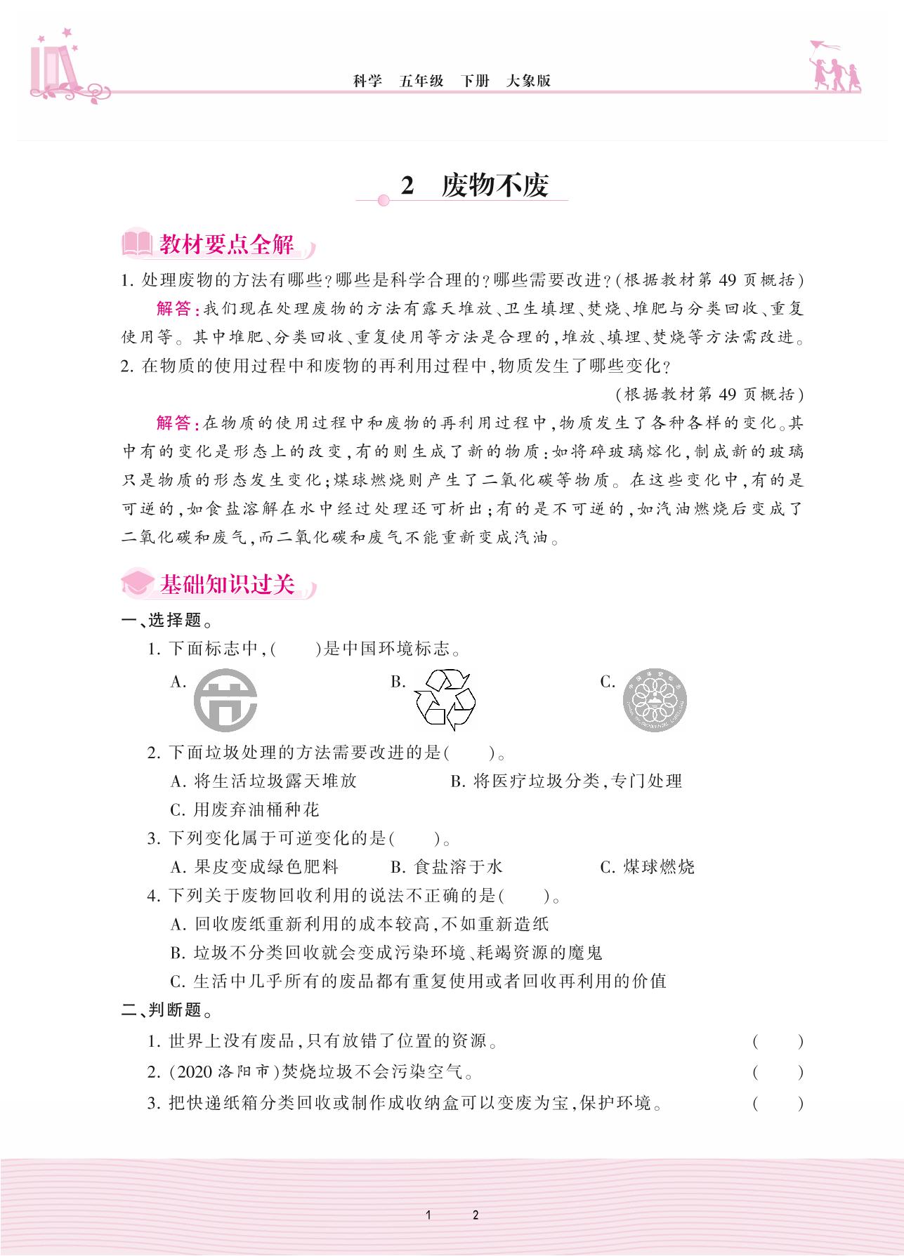 2021下册五年级科学大象版 第四单元 变废为宝——2 废物不废
