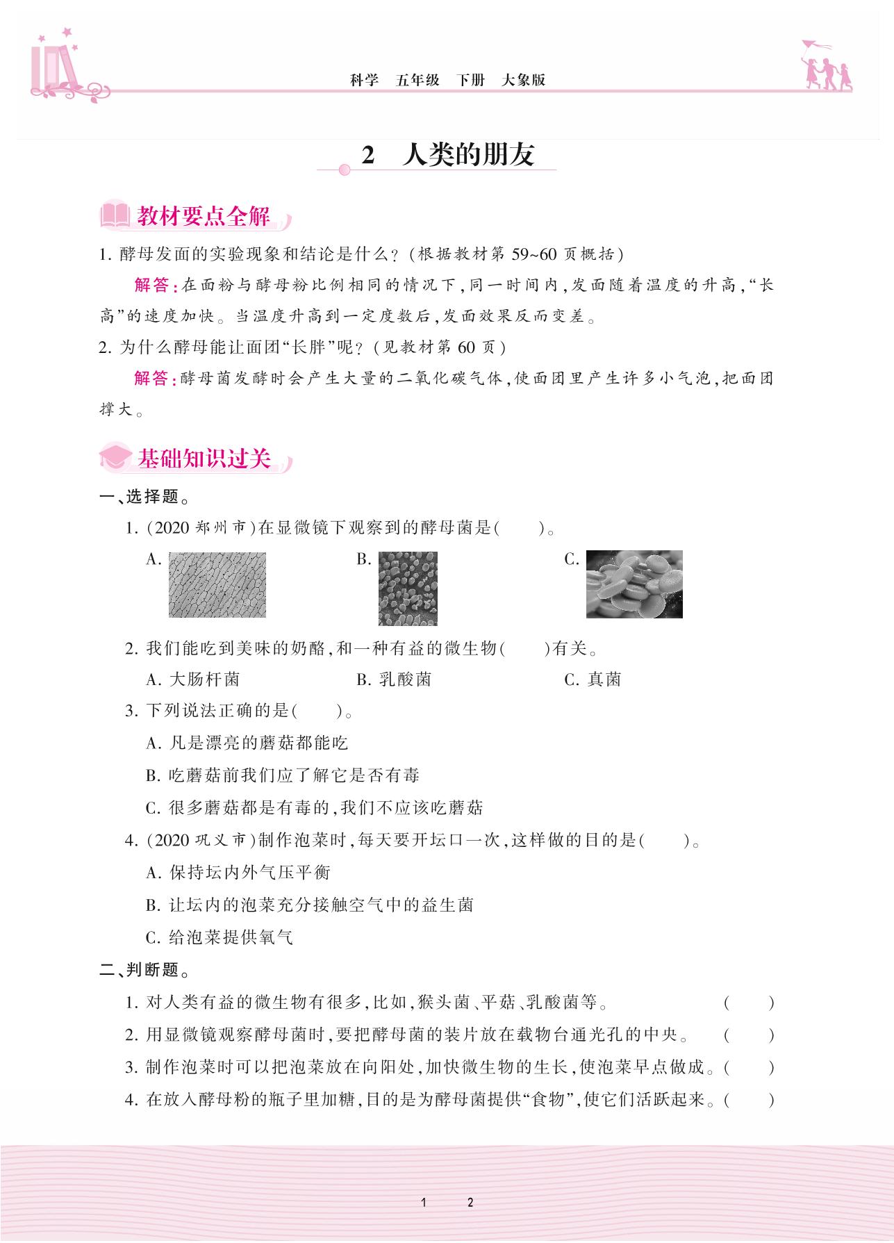 2021下册五年级科学大象版 第五单元 形形色色的微生物——2 人类的朋友