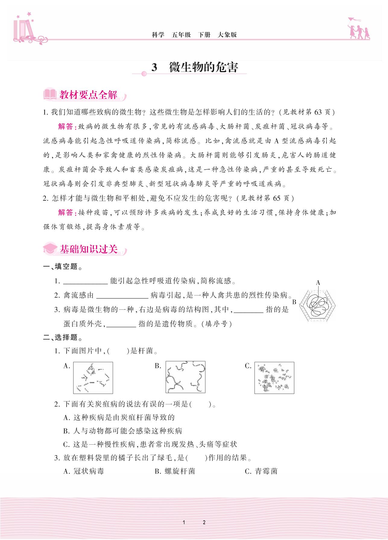 2021下册五年级科学大象版 第五单元 形形色色的微生物——3 微生物的危害