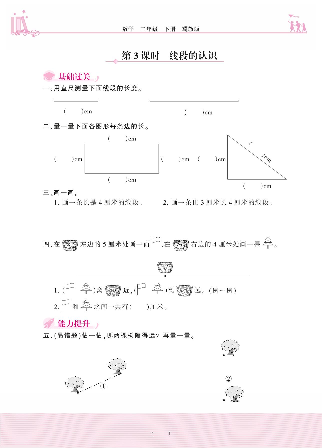 2021下册二年级数学冀教版 一 厘米、分米、米——第3课时 线段的认识