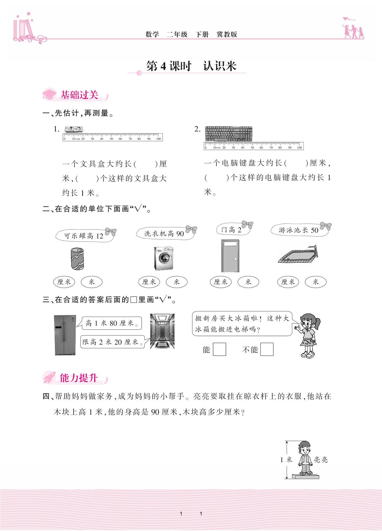 2021下册二年级数学冀教版 一 厘米、分米、米——第4课时 认识米