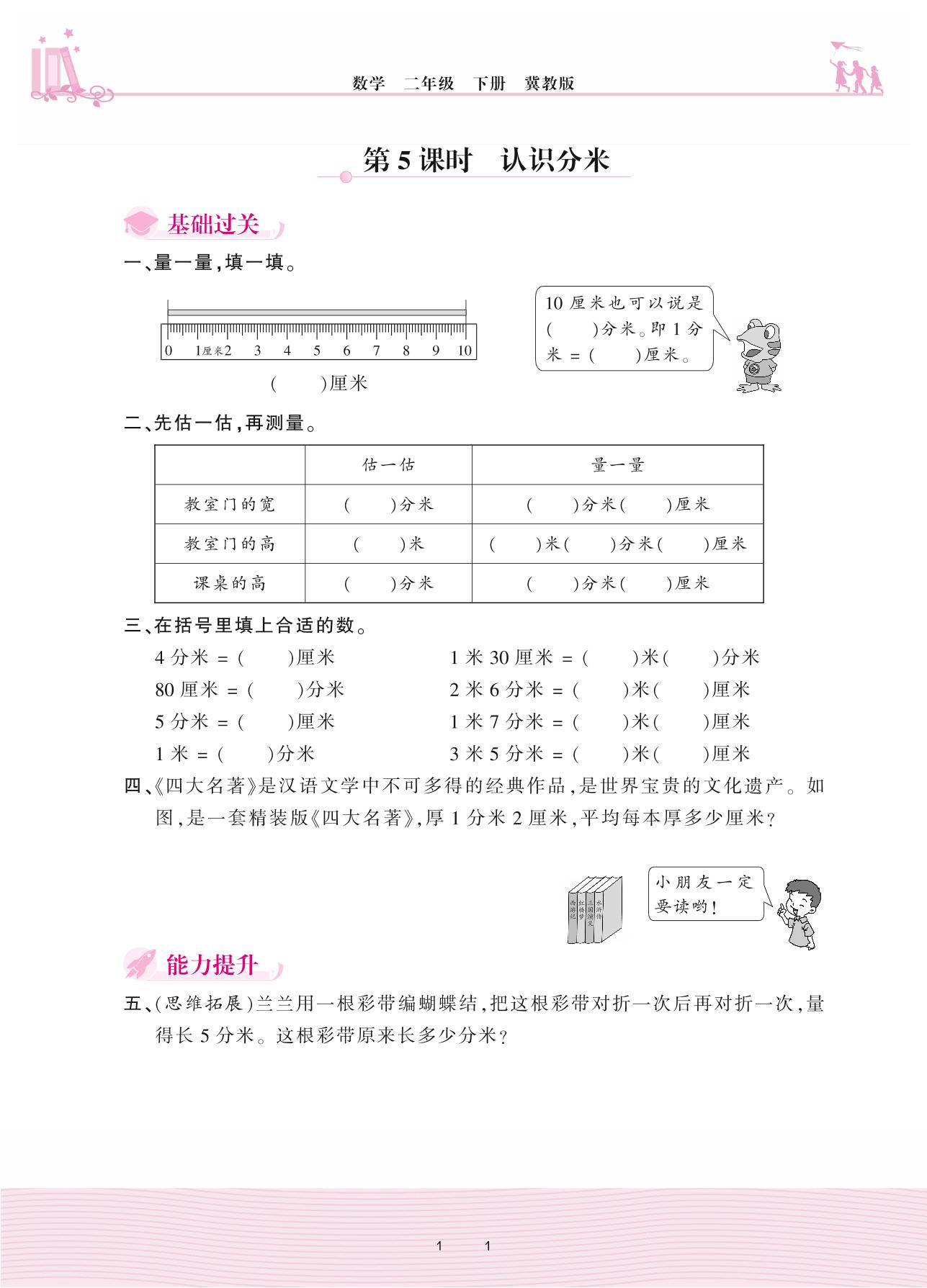 2021下册二年级数学冀教版 一 厘米、分米、米——第5课时 认识分米