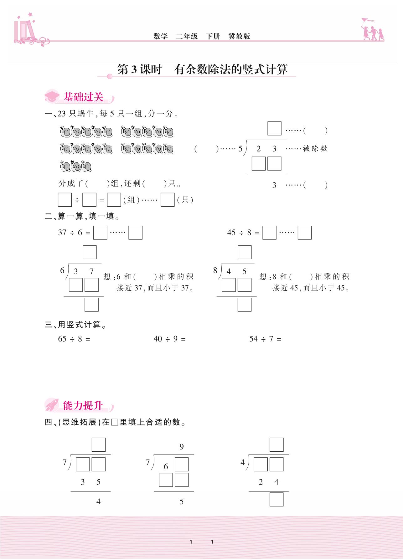 2021下册二年级数学冀教版 二 有余数的除法——第3课时 有余数除法的竖式计算