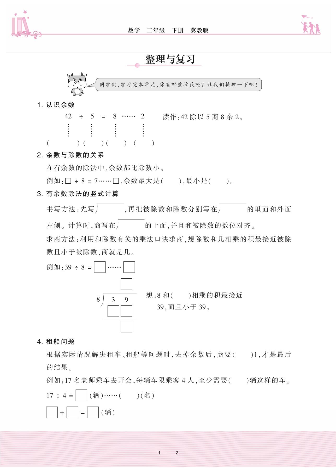 2021下册二年级数学冀教版 二 有余数的除法——整理与复习