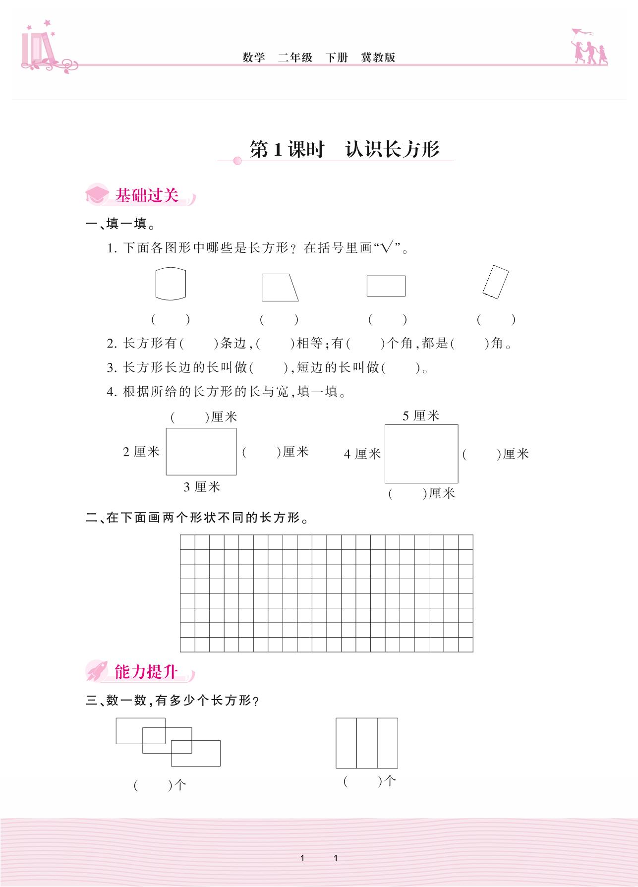 2021下册二年级数学冀教版 五 四边形的认识——第1课时 认识长方形