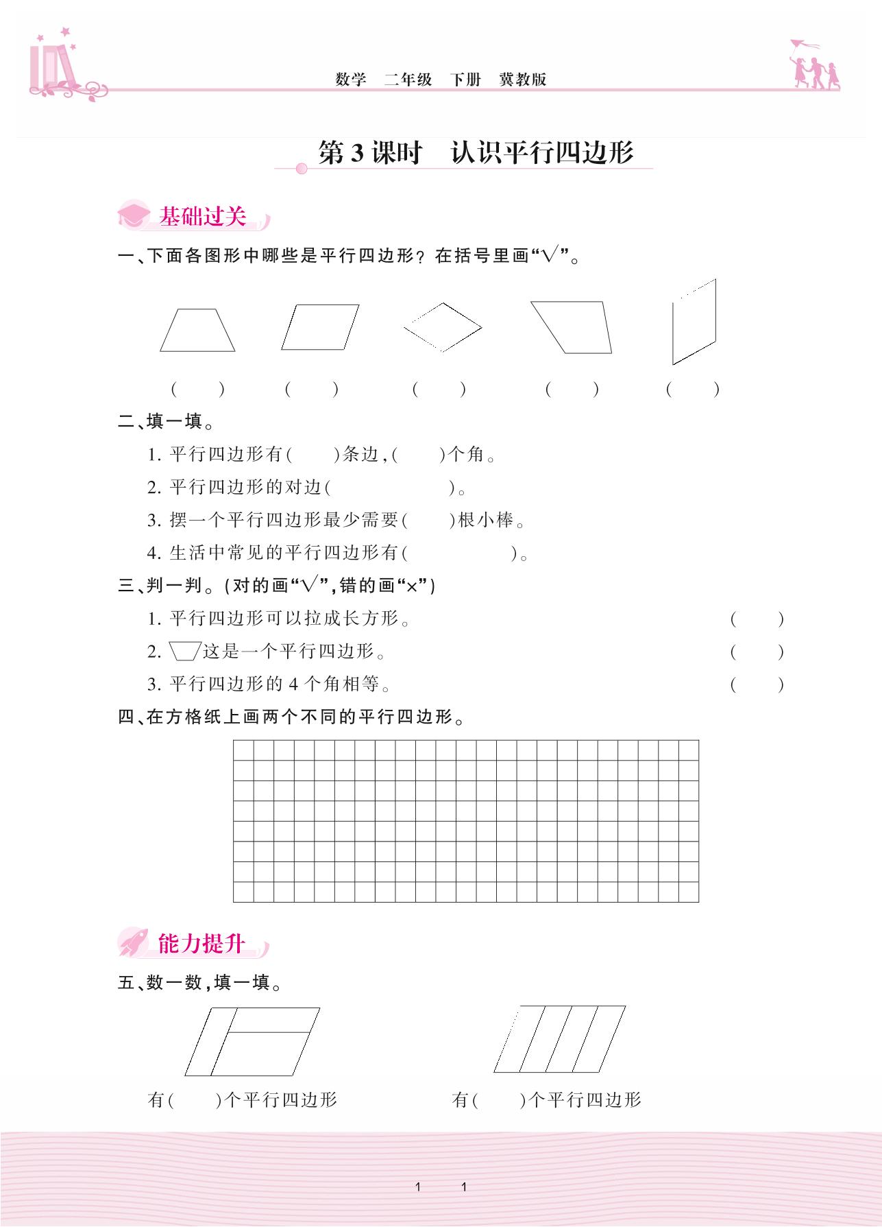 2021下册二年级数学冀教版 五 四边形的认识——第3课时 认识平行四边形