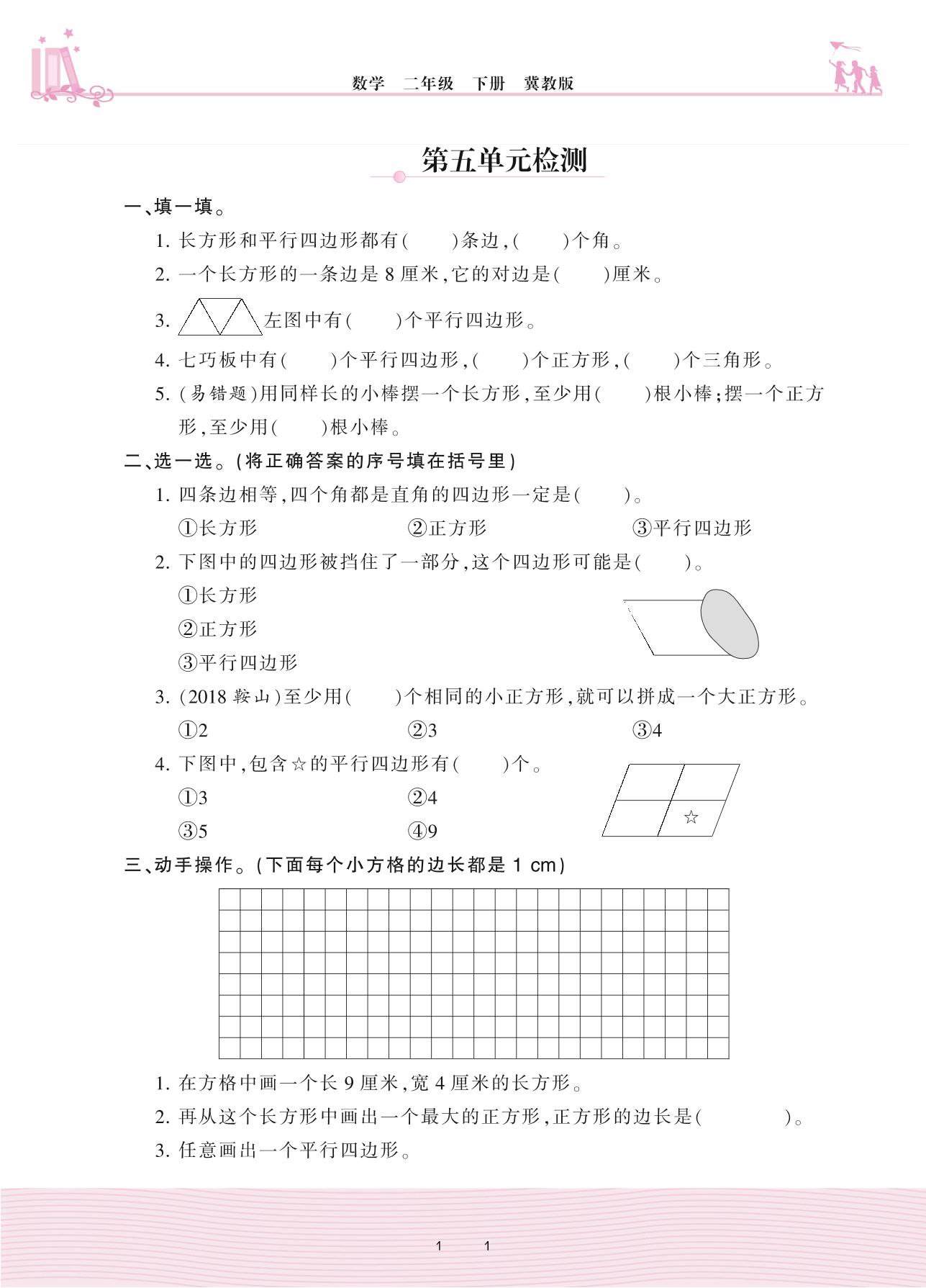 2021下册二年级数学冀教版 五 四边形的认识——第五单元检测