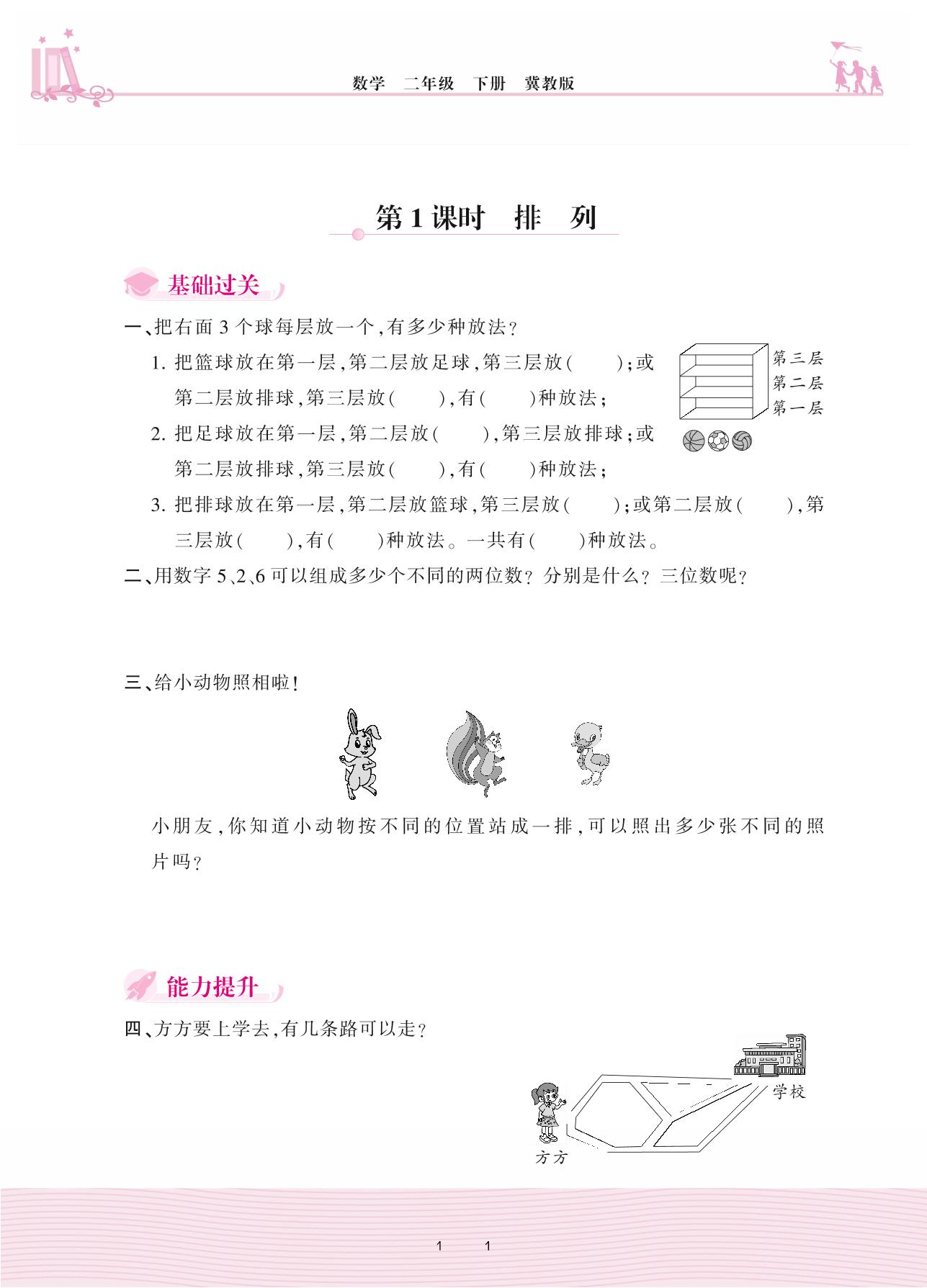 2021下册二年级数学冀教版 八 探索乐园——第1课时 排列