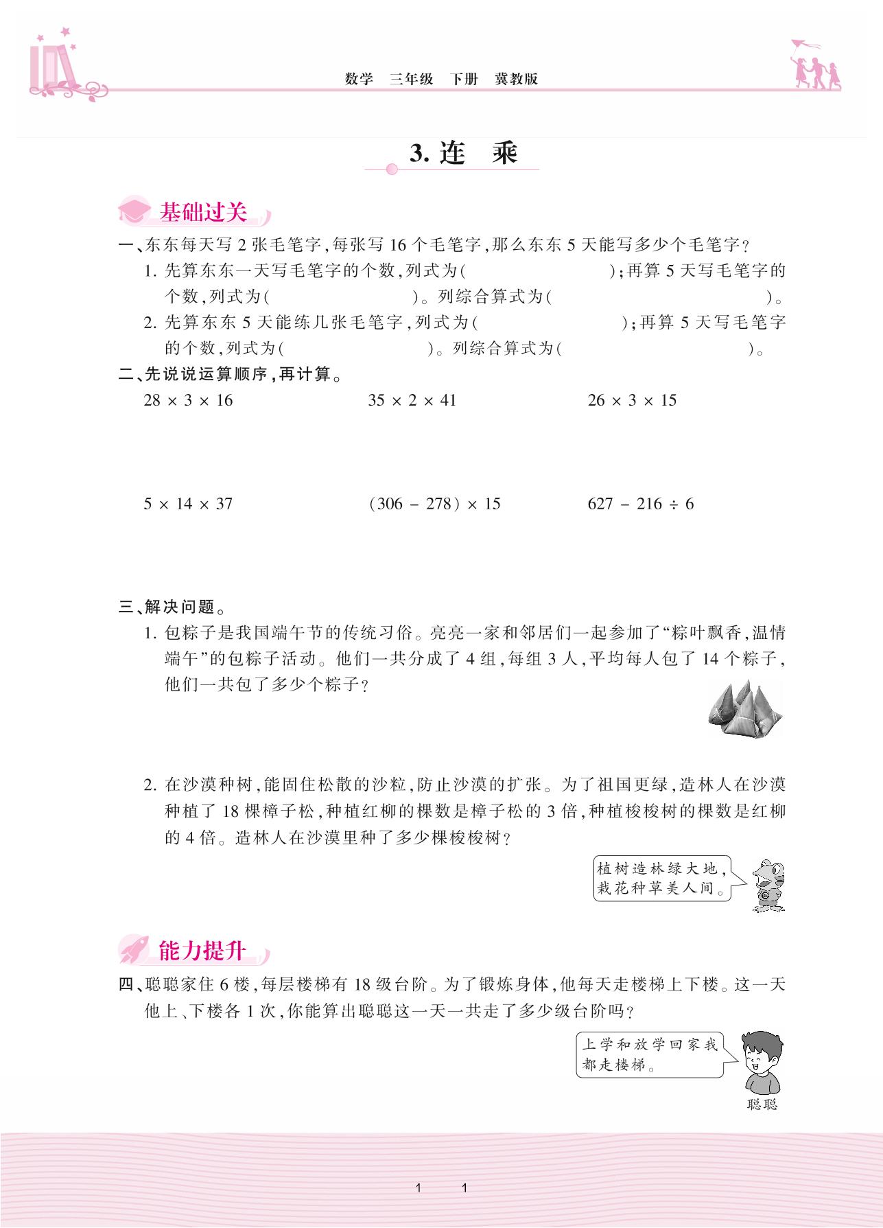 2021下册三年级数学冀教版 二 两位数乘两位数 3. 连乘