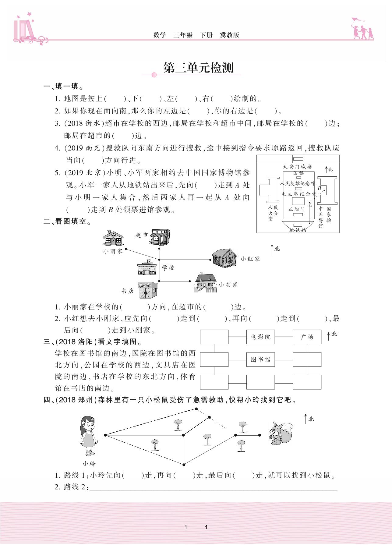 2021下册三年级数学冀教版 三 辨认方向——第三单元检测