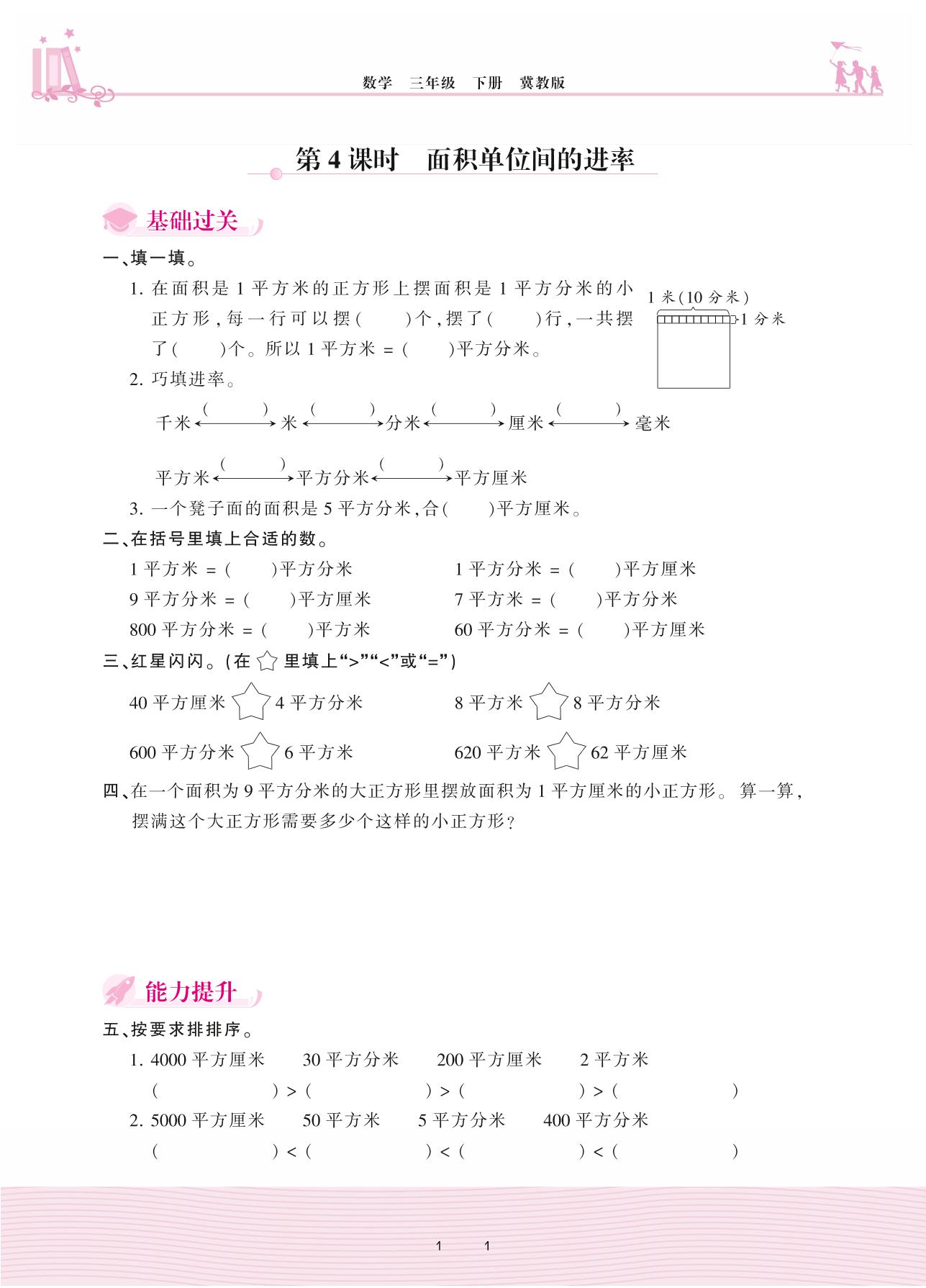 2021下册三年级数学冀教版 七 长方形和正方形的面积 1. 面积和面积单位——第4课时 面积单位间的进率