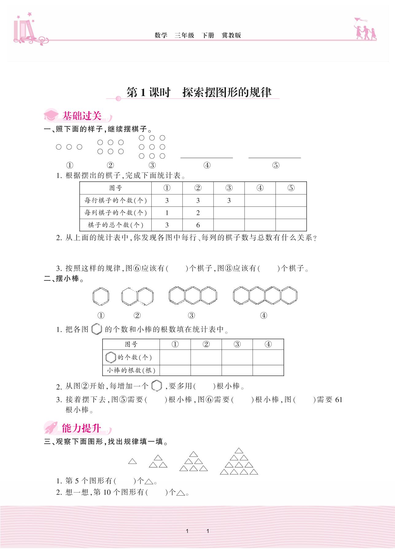 2021下册三年级数学冀教版 九 探索乐园——第1课时 探索摆图形的规律