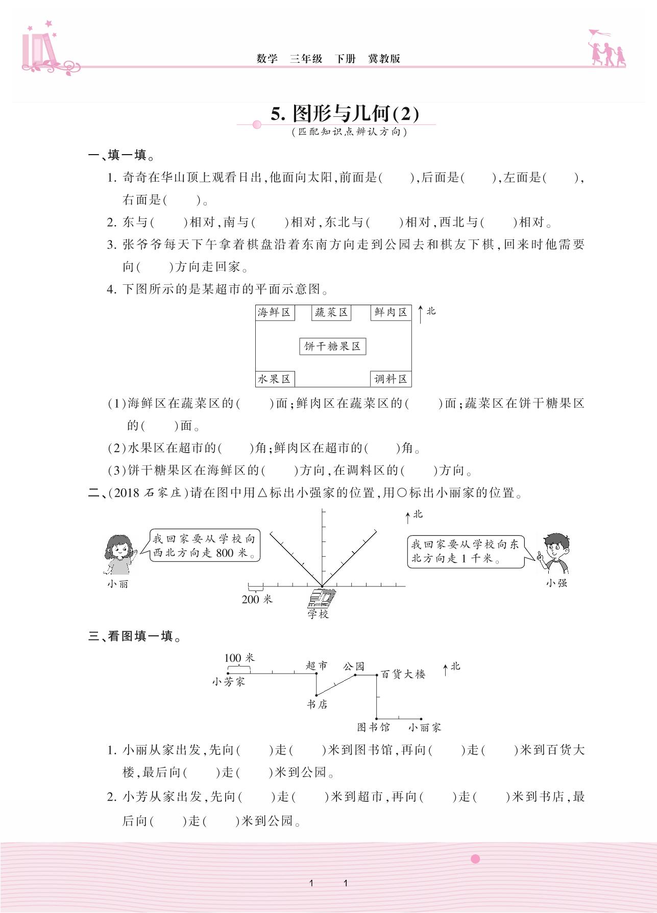 2021下册三年级数学冀教版 整理与评价——5. 图形与几何(2)