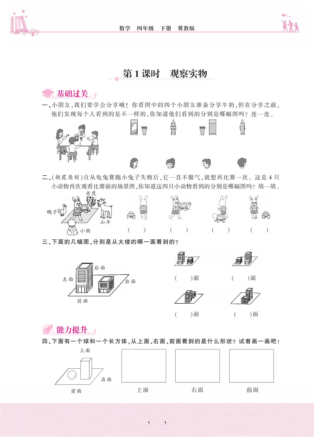 2021下册四年级数学冀教版 一 观察物体(二)——第1课时 观察实物