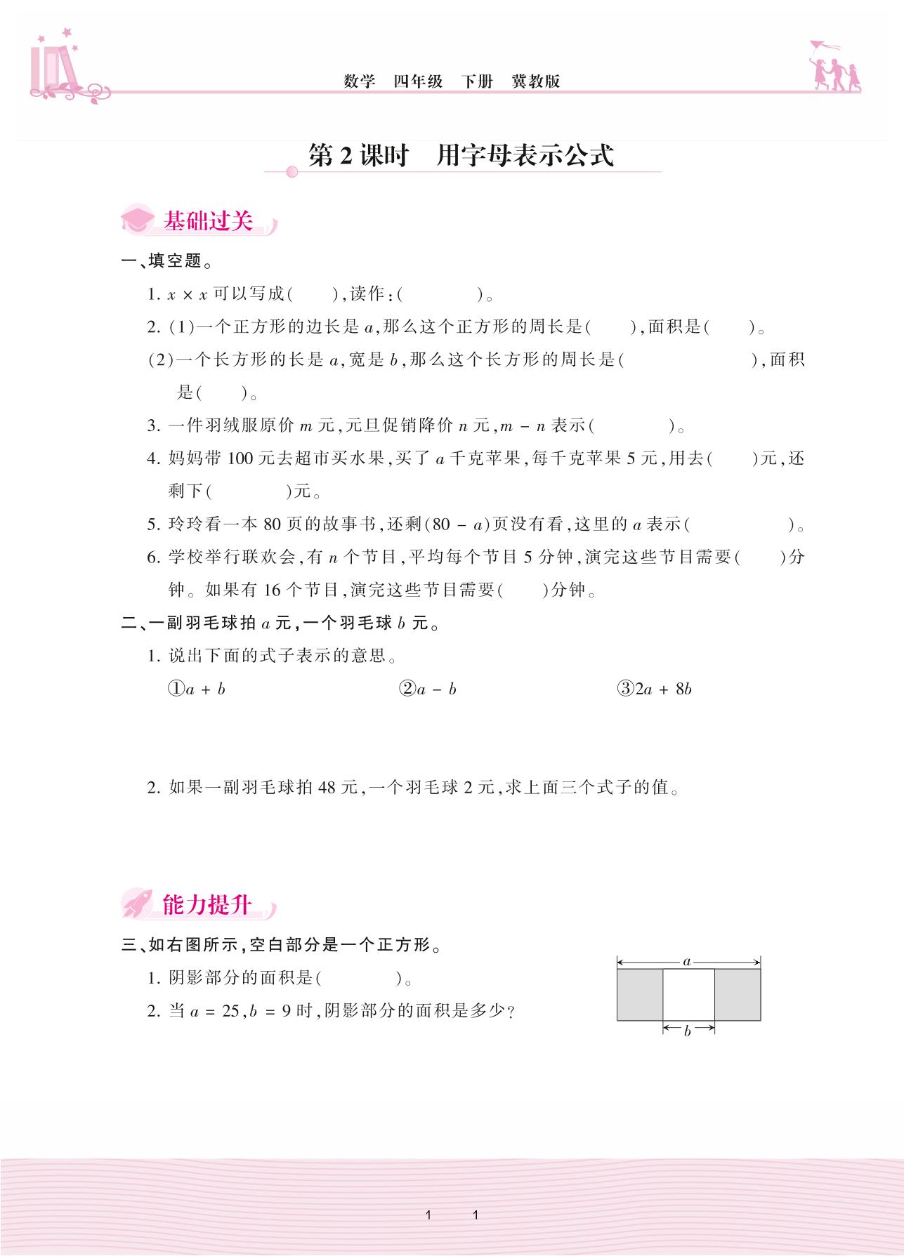2021下册四年级数学冀教版 二 用字母表示数——第2课时 用字母表示公式
