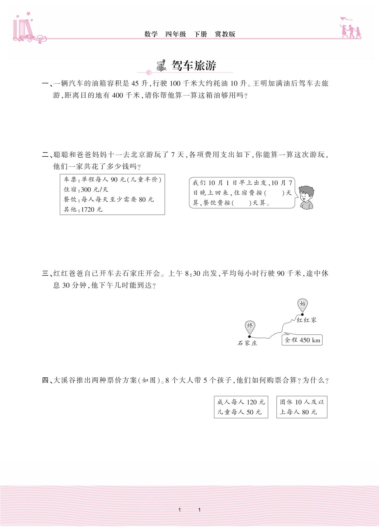 2021下册四年级数学冀教版 三 三位数乘两位数——驾车旅游