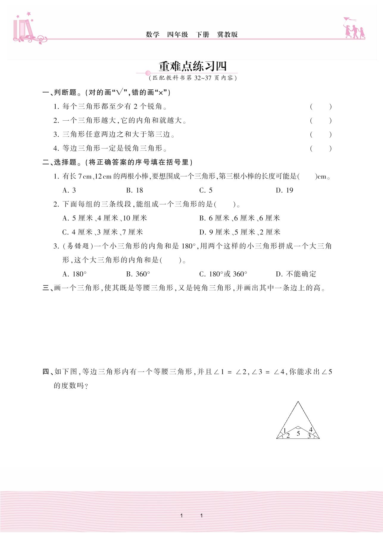 2021下册四年级数学冀教版 四 多边形的认识——重难点练习四