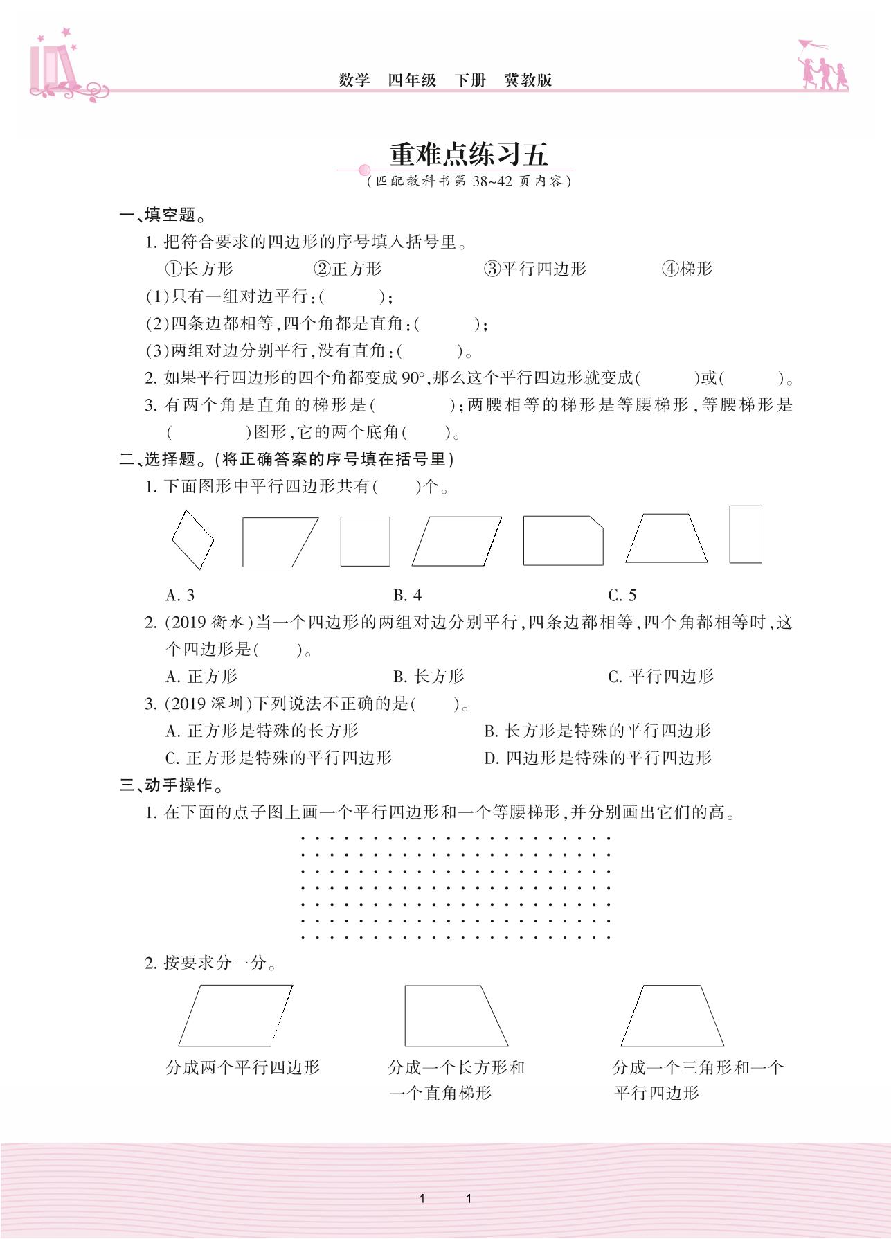 2021下册四年级数学冀教版 四 多边形的认识——重难点练习五