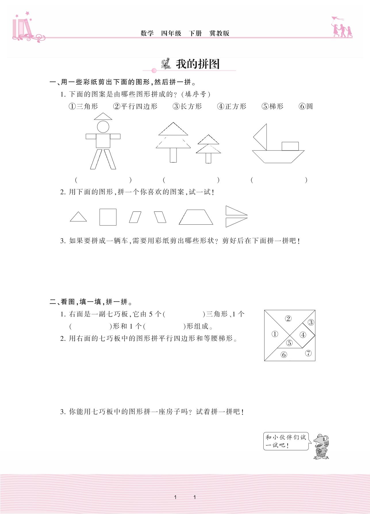 2021下册四年级数学冀教版 四 多边形的认识——我的拼图