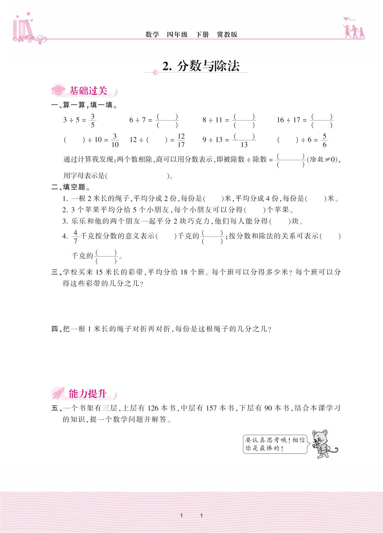 2021下册四年级数学冀教版 五 分数的意义和性质 2. 分数与除法