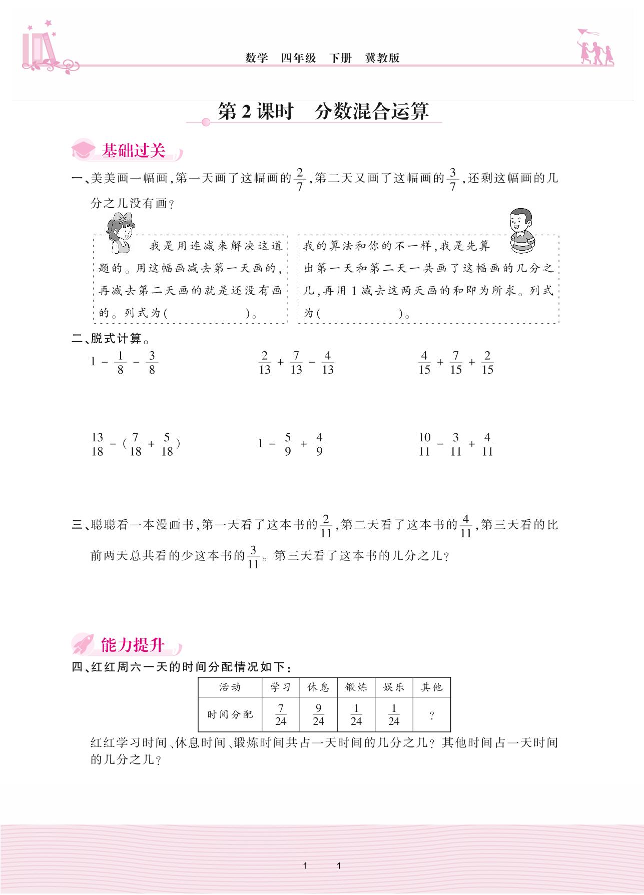 2021下册四年级数学冀教版 五 分数的意义和性质 4. 分数加减法——第2课时 分数混合运算