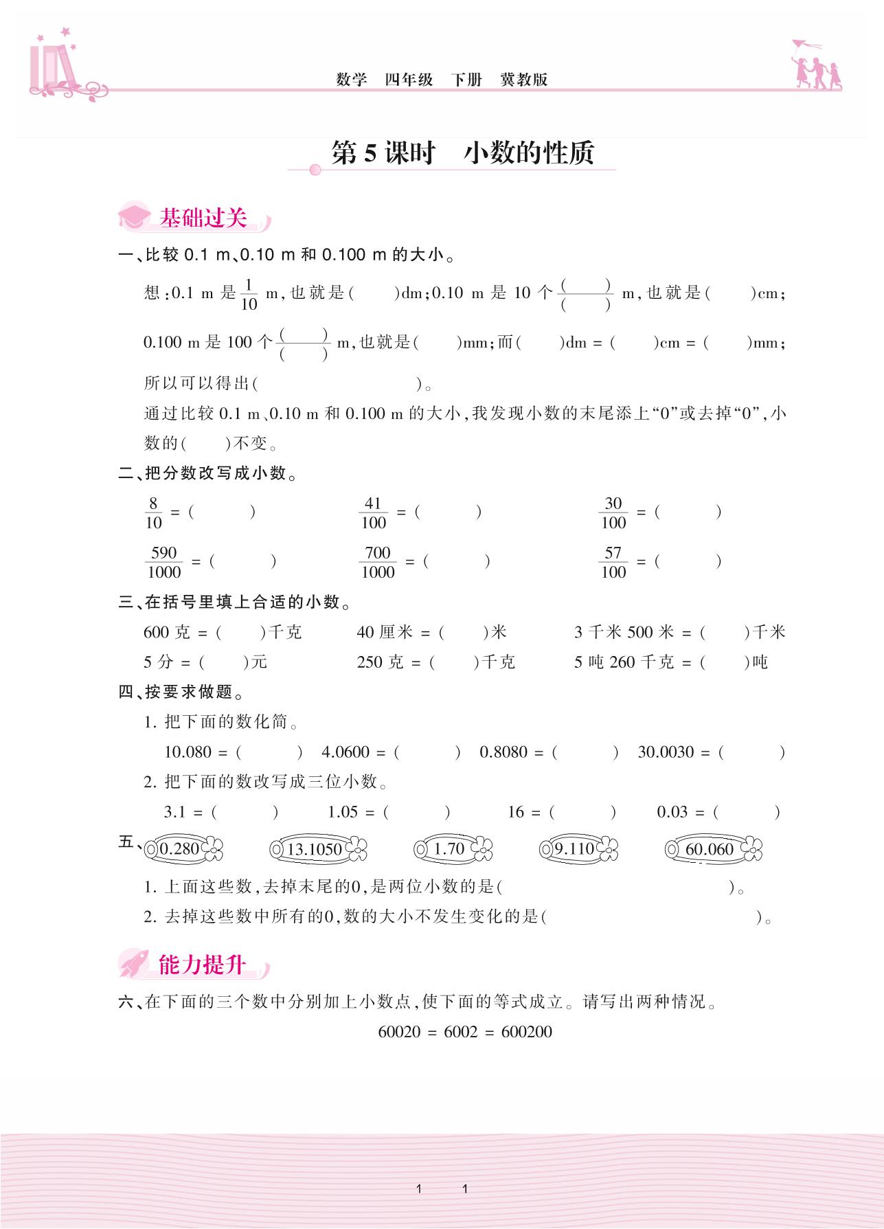 2021下册四年级数学冀教版 六 小数的认识——第5课时 小数的性质