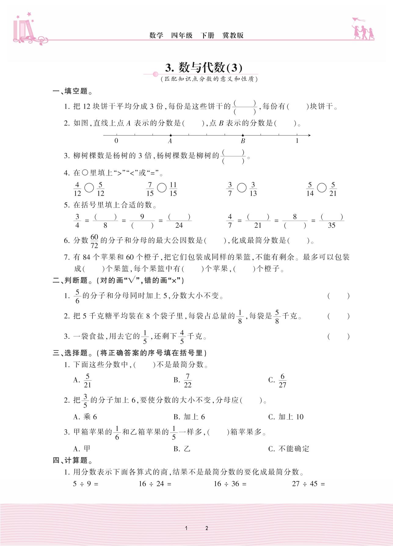 四年级数学冀教版下册专项卷