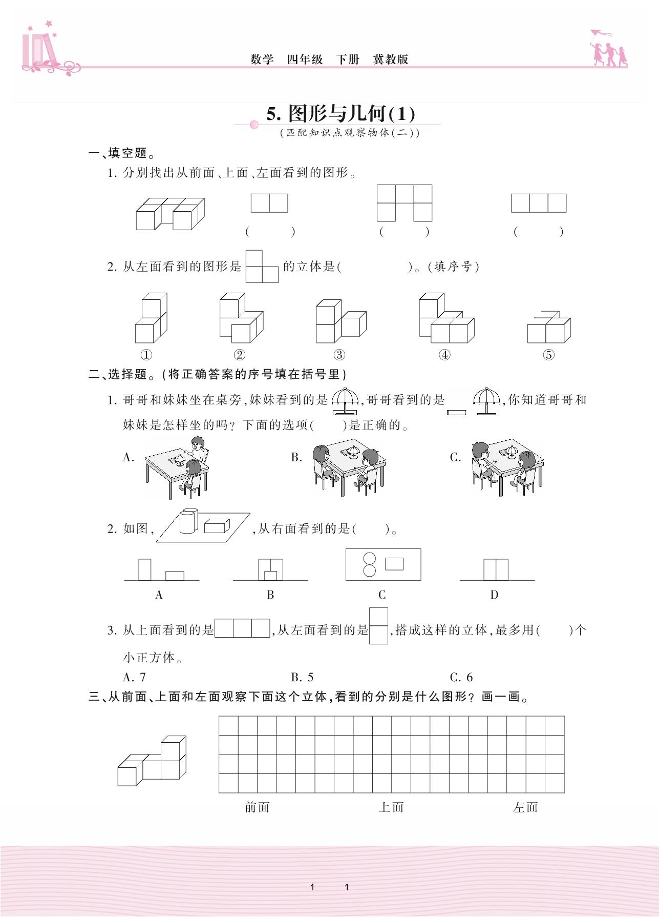 2021下册四年级数学冀教版 整理与评价——5. 图形与几何(1)