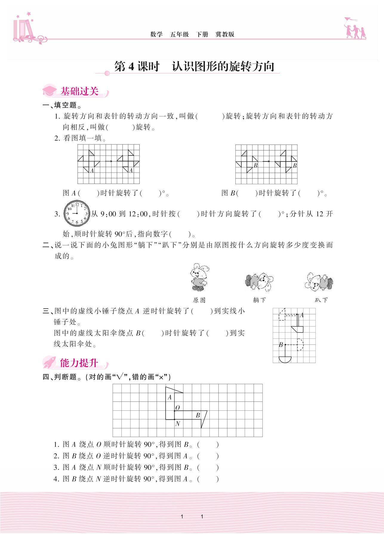 2021下册五年级数学冀教版 一 图形的运动(二)——第4课时 认识图形的旋转方向
