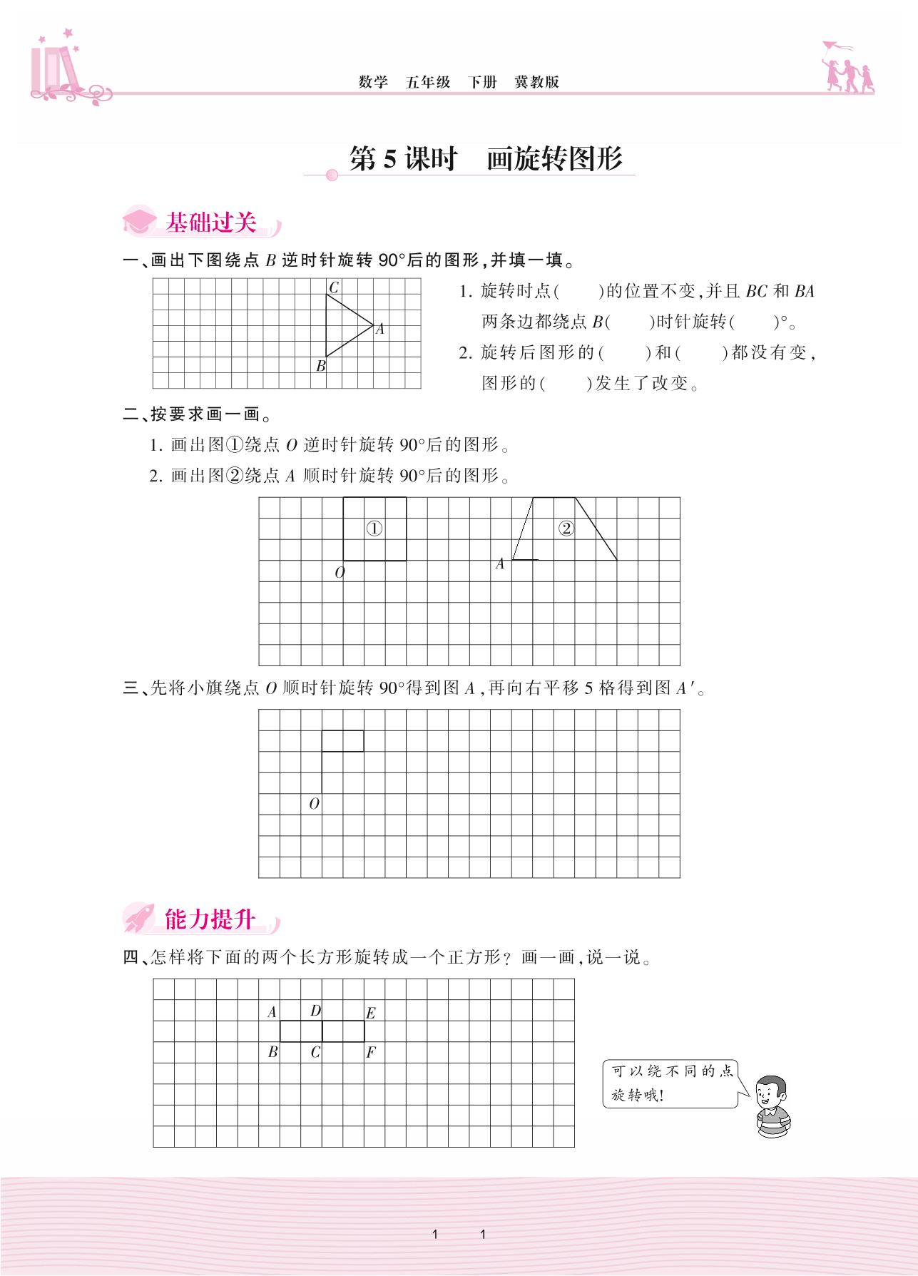 2021下册五年级数学冀教版 一 图形的运动(二)——第5课时 画旋转图形