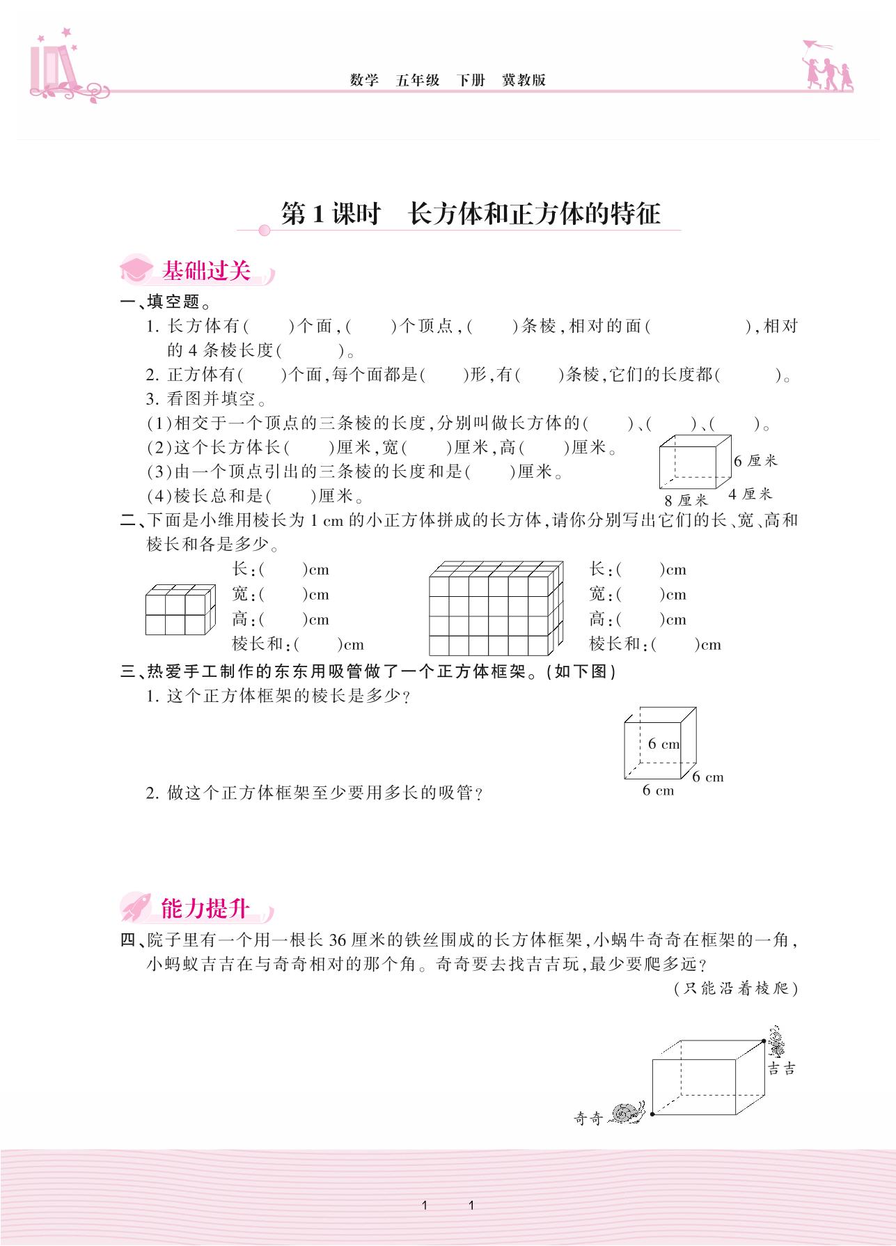 2021下册五年级数学冀教版 三 长方体和正方体——第1课时 长方体和正方体的特征