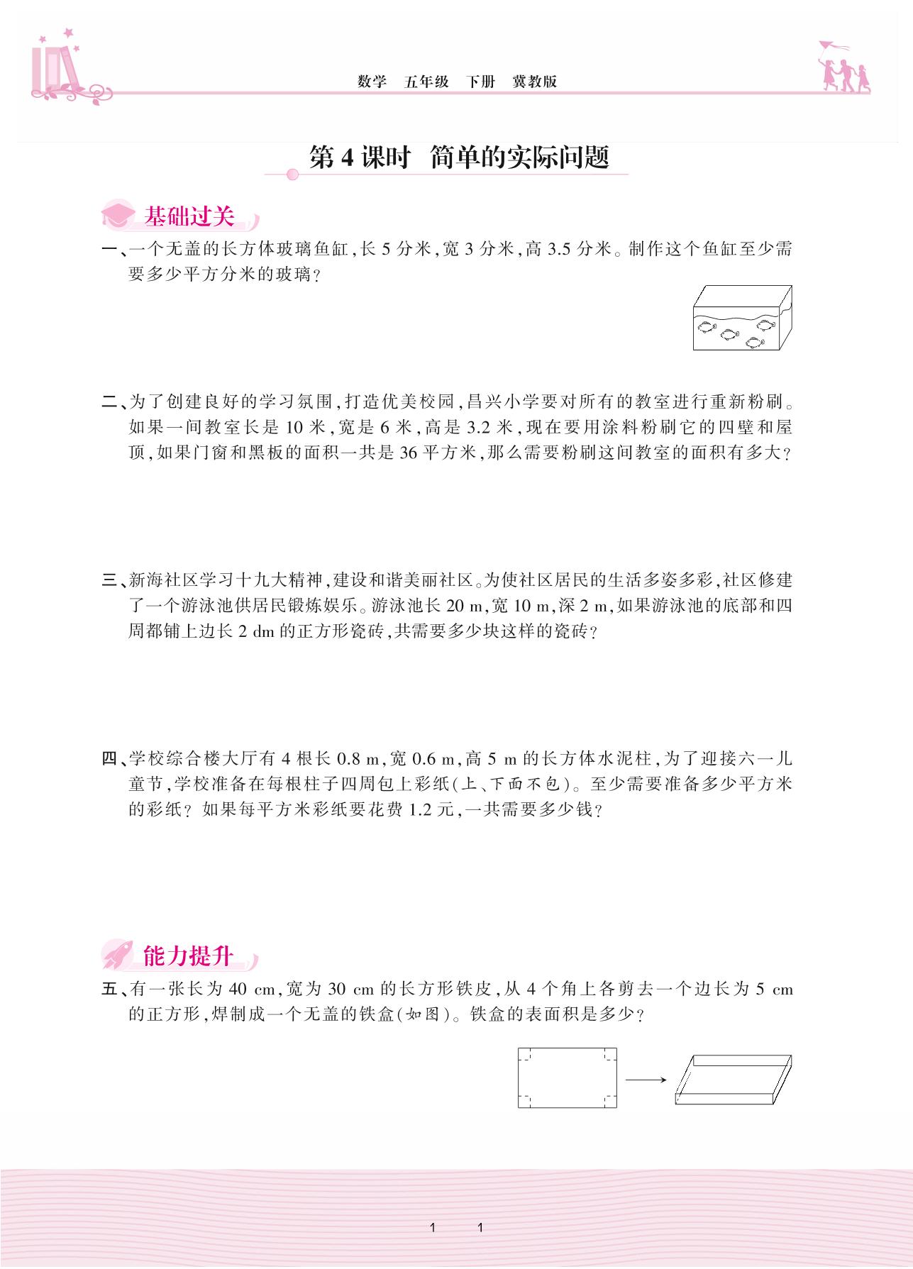 2021下册五年级数学冀教版 三 长方体和正方体——第4课时 简单的实际问题