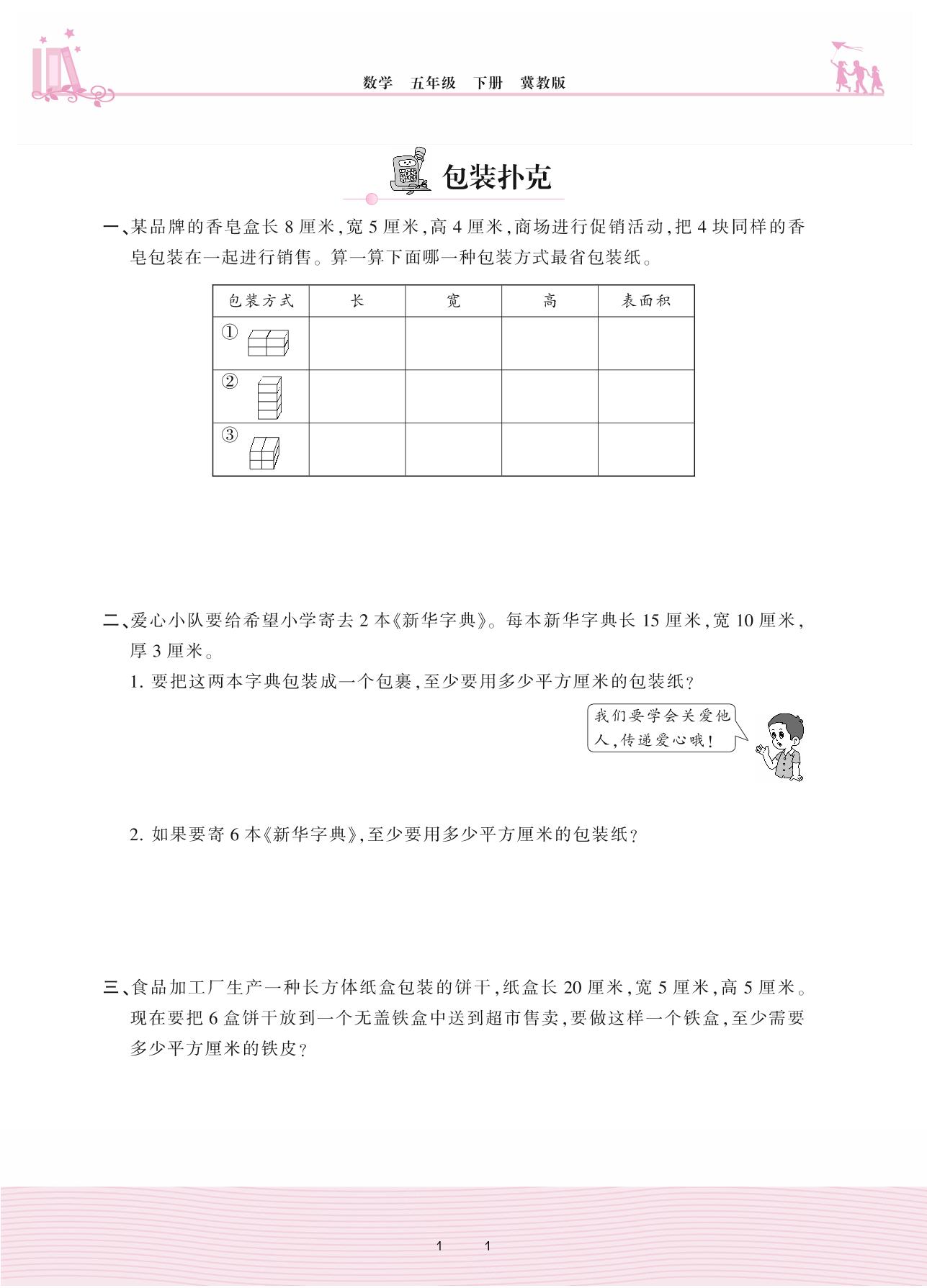 2021下册五年级数学冀教版 三 长方体和正方体——包装扑克