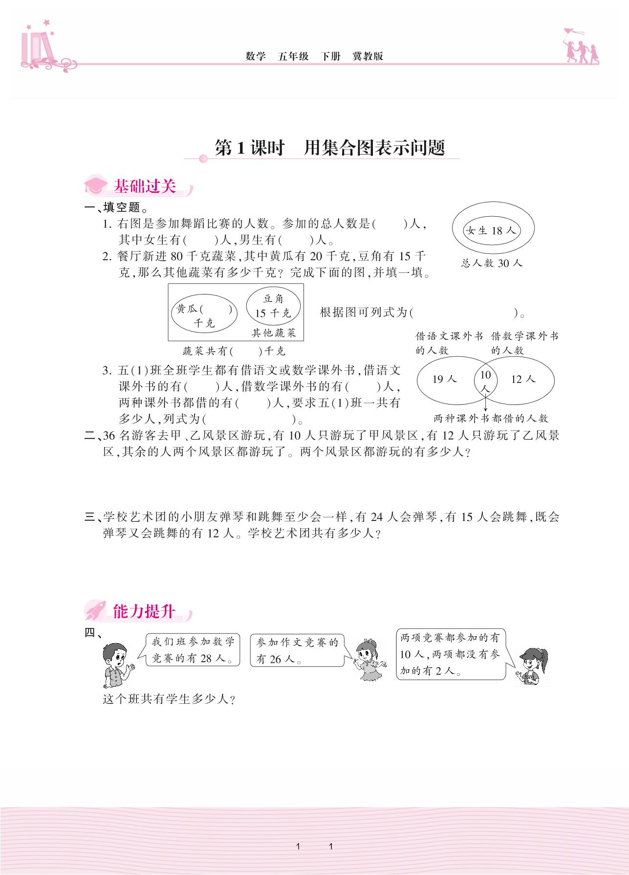 2021下册五年级数学冀教版 八 探索乐园——第1课时 用集合图表示问题