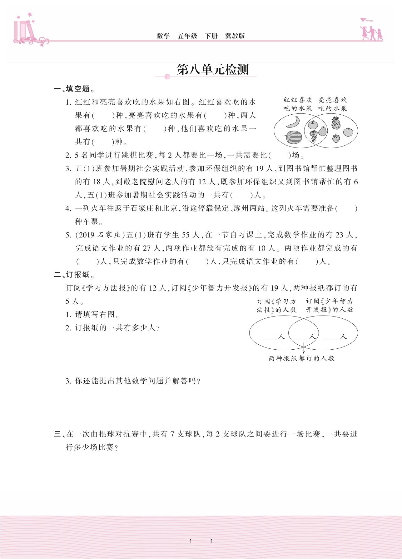2021下册五年级数学冀教版 八 探索乐园——第八单元检测