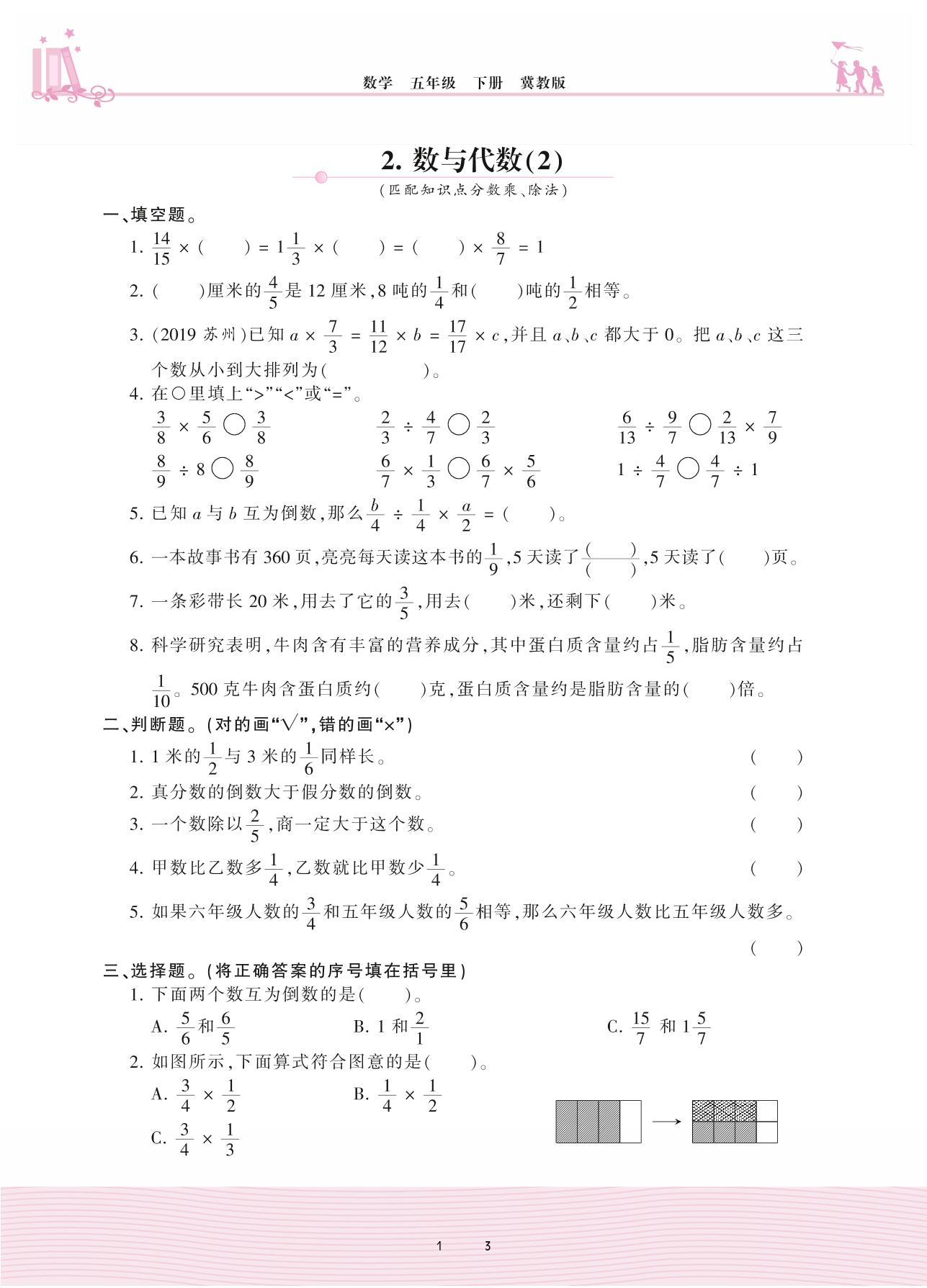 2021下册五年级数学冀教版 整理与评价——2. 数与代数(2)
